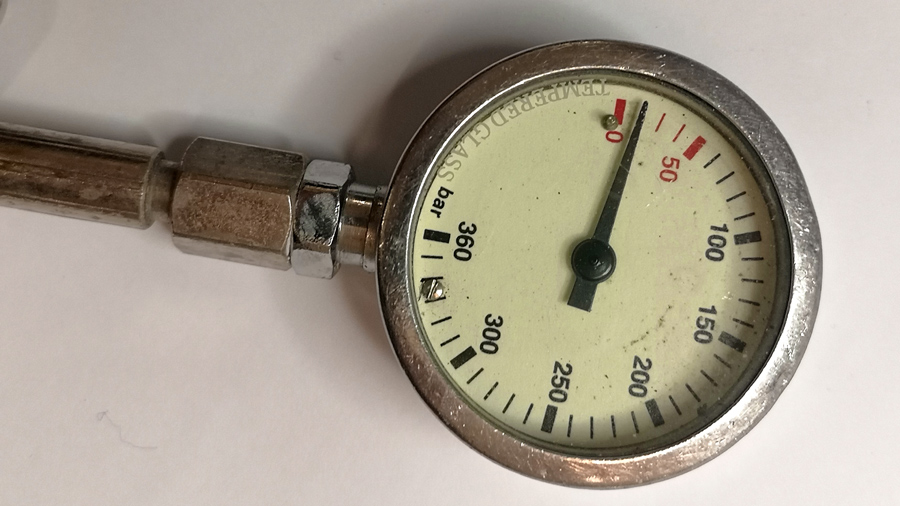 Se la lancetta del manometro non va a fondo scala a riposo quasi sicuramente la molla che comanda il suo movimento ha subìto un urto sufficientemente forte da spostare la lancetta da zero bar.