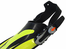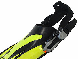La parte a "coda di balena" nella calzata*** permette una migliore trasmissione di potenza, con un miglioramento della sensibilità durante la pinneggiata.