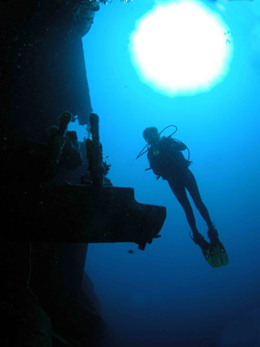 Torniamo verso il relitto, tutte le porte sono aperte e stuzzicano la nostra curiosità, ma ormai è tempo di risalire e quindi ci dirigiamo diligentemente verso la cima di risalita, abbandonando lentamente e con una piccola ricchezza in più , lo scafo adagiato sul fondo.