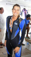 Ciao, mi chiamo Francesca ma il mio nick è Cicciaparty… tutti mi chiedono da dove deriva, diciamo che esprime la mia voglia di divertirmi e di organizzare sempre feste ;-))) Anche se non sono romana DOC (sono nata a Pisa e ho vissuto molto tempo a Bologna), vivo a Roma da quasi 20 anni e ormai ho la Capitale nel cuore, anche perchè non saprei come fare se non avessi il mare a portata di “tuffo”…. mi immergo solo da un anno e mezzo, ma da quando ho iniziato non riesco più a farne a meno….volevo riuscire ad arrivare a 100 immersioni entro fine anno ma non credo che ce la farò (sono solo ad 85…) poiché non ho ferie per partire al caldo e non avendo ancora la stagna il mediterraneo è un po’ freddino….Al momento ho il brevetto rescue ma appena ho tempo mi piacerebbe diventare divemaster, poi si vedrà, magari inizio con qualche minicorso tecnico, ma senza esagerare… Mi piace immergermi ovunque, va bene anche la vasca da bagno in mancanza di altro, ma certo adoro i milioni di colori e le varietà di pesci dei mari caldi, in particolare sono una patita degli squali. Non amo particolarmente i relitti perchè mi fanno un po’ paura, quello che veramente adoro è la sensazione di calma, di benessere e di astrazione totale dal mondo che provo quando sono sott’acqua, persa a contemplare un nudibranco o a rincorrere un martello 🙂