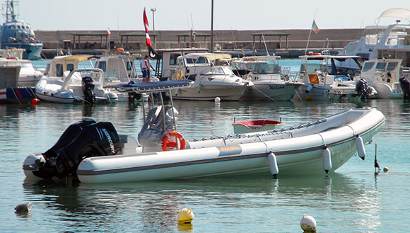 fiammante gommone, un BAT 850 (2 motori Mercury da 150 cv ciascuno), omologato