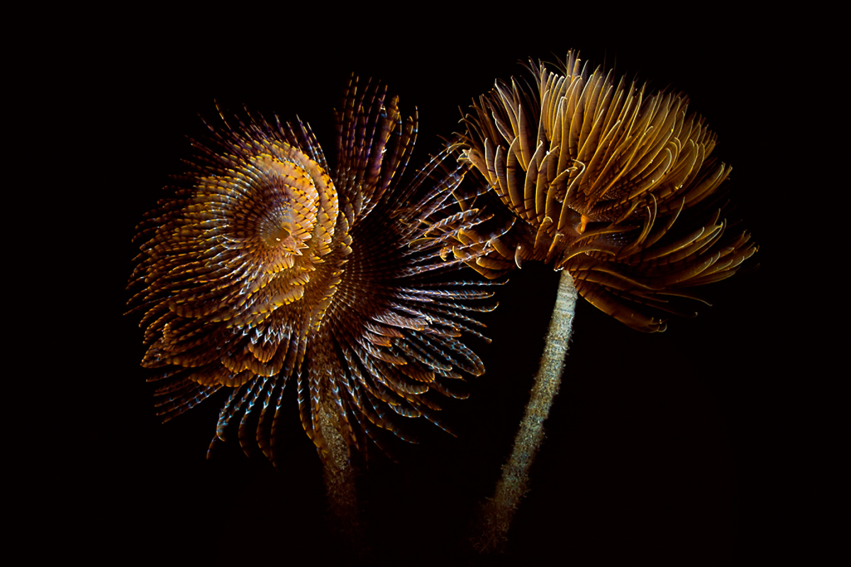 Questo viaggio attraverso le profondità è accompagnato e riorganizzato dall’interior designer Andrea Dall’Olio che accoglie queste opere nella sua galleria, facendo dialogare le sue creazioni di design con la fotografia che è a sua volta anch’essa un’inesauribile fonte di ispirazione e decorazione per spazi privati o collettivi. “Lorenzo Terraneo ci svela la meraviglia e la perfezione delle creature marine. Talvolta come fiori, altre come piume, fino a diventare pattern astratti e multicolore come i capolavori degli impressionisti.”