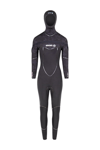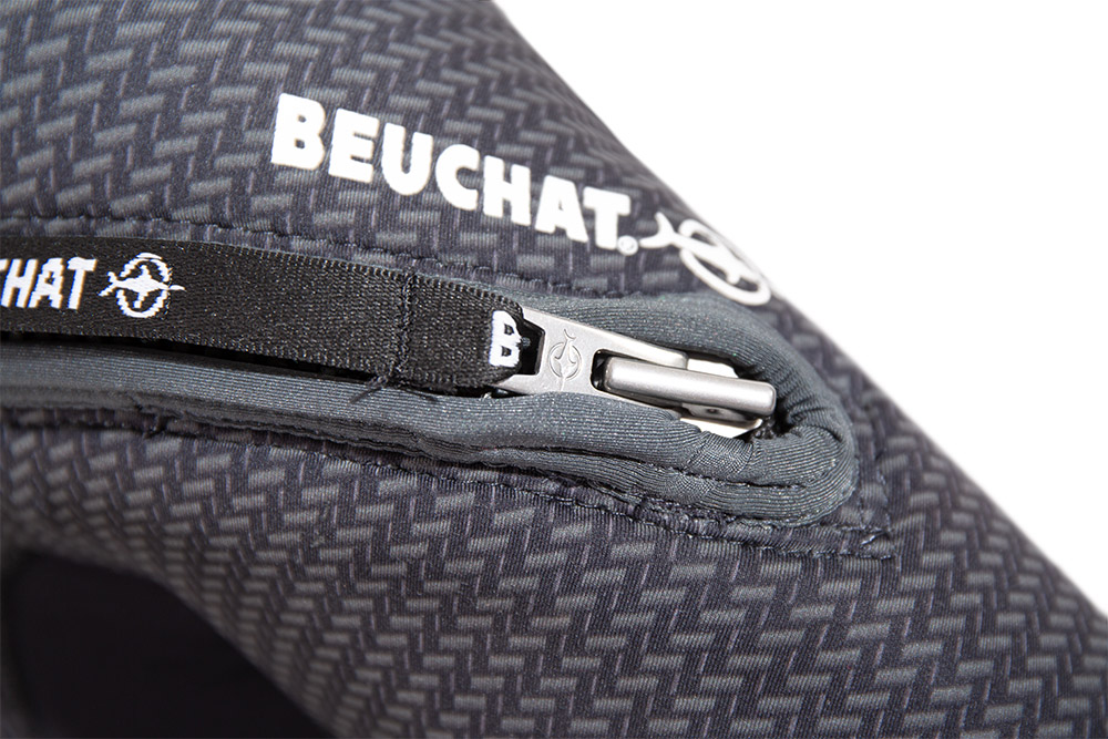 - Taglio Beuchat, appositamente pensato per creare una muta flessibile e confortevole con cuciture rivestite di PU liquido