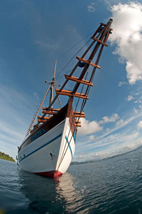 Ormai Aurora è grande, solca le acque dell’arcipelago Indonesiano da un anno in un programma di crociere subacquee e di esplorazione della biodiversità, lungo rotte note e meno note. Una barca che nasce dalla tradizione per trasformarsi in qualcosa di moderno, di attuale: Aurora è la dea romana che ogni giorno rinasce e si rinnova. Trasporta subacquei e scienziati, prendendo parte a crociere di ricerca nelle zone dove nasce la biodiversità marina. A bordo un piccolo laboratorio biologico permette agli specialisti di identificare organismi, di isolare sostanze tra cui ci potrebbero essere i farmaci del futuro. Turismo e scienza, tradizione e biodiversità, assieme in un progetto unico.