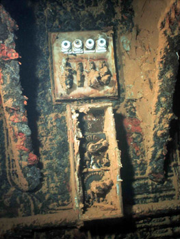 La riserva d’aria e la modesta profondità ci offrono ancora qualche minuto per godere di uno spettacolo che solo in una pellicola cinematografica possiamo ritrovare, passiamo altre stanze e corridoi che ci portano ad osservare tutto in un silenzio scuro rotto solo dal sibilo dell’erogatore e dalla timida luce della mia torcia.