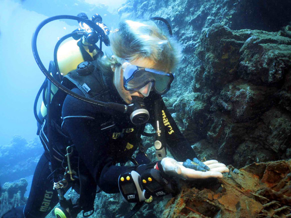 La barca si ormeggia a ridosso mentre noi equipaggiati di tutto punto saliamo sul gommone che ci porterà sullo specchio d’acqua sovrastante il transatlantico italiano.Ci ormeggiamo sulle gruette delle scialuppe di salvataggio che affiorano sulla superficie del mare quasi a volere mantenere ancora un legame con il mondo terrestre. L’impatto con il mare è fantastico, caldo , cristallino e popolato di vita in ogni direzione in cui si rivolga lo sguardo. In un primo momento non riesco a riconoscere lo scafo della nave , da tanto è tappezzato da organismi che lo rendono coloratissimo, rivestito da ogni specie di gorgonia , rami di corallo e enormi alcionari.