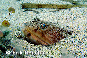 A destra: sfruttando tutto lo Zoom del 1 Nikkor VR 10-30 mm F/3.5-5.6 fotografiamo un esemplare di Pesce lucertola che si nasconde nella sabbia.