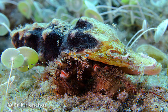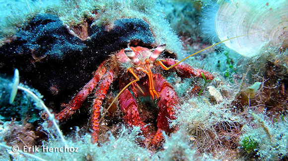 I flash collegati tramite i cavi in fibra ottica ci permettono di gestire al meglio la luce e le esposizioni. In questo caso fotografiamo un minuscolo Paguro.