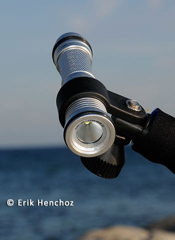 Per i nostri video subacquei abbiamo utilizzato la piccola ma potente torcia LED proposta come optional da NiMAR ed il braccetto snodato in materiale plastico. Opportunamente fissato alla slitta posta nella parte superiore della custodia, ci ha permesso di brandeggiare correttamente la torcia così da puntare il fascio di luce sui nostri soggetti. Per le riprese ravvicinate, al fine di ottenere la massima stabilità possibile, ci siamo avvalsi di un piccolo treppiede in plastica, ponendo la massima attenzione nel non arrecare danni al fondale.