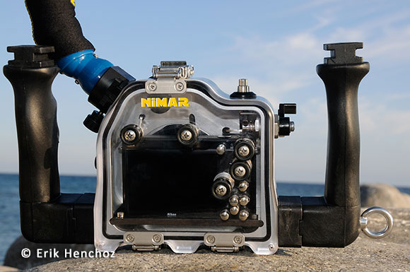 La linea di accessori dedicata alla custodia NIJ1 non finisce qui: oltre al parco ottiche è possibile utilizzare i braccetti flash in carbonio che NiMAR produce e propone per le sue diverse custodie subacquee. Le maniglie plastiche fissate su NIJ1, oltre a poter essere smontate facilmente per il trasporto grazie ad una vite a brugola, sono dotate di un attacco a slitta alla quale poter collegare i bracci telescopici NiMAR o di altre marche.