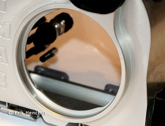 A destra: l’oblò piano progettato per utilizzare lo Zoom 1 Nikkor VR 10-30 mm F/3.5-5.6.