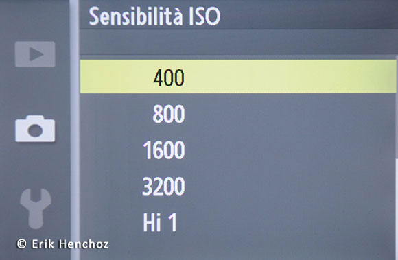 Il menu di Nikon 1 J1 dedicato alla gestione della sensibilità ISO. In questo caso decidiamo di lavorare a 400 ISO.