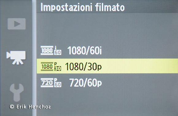Nikon 1 J1 grazie al menu “Impostazioni filmato” ci permette di scegliere tra tre differenti formati video.