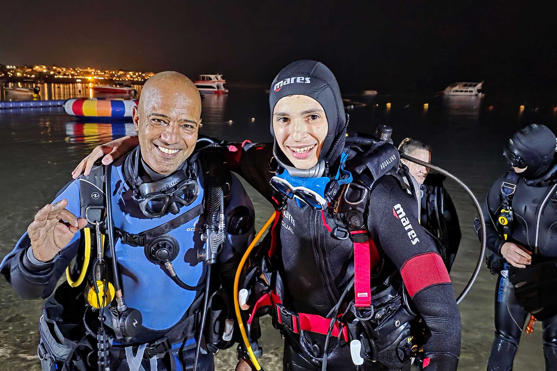 E poi ci sono momenti che restano impressi più di una fotografia: mentre io e Francesca ci rilassiamo al Camel, chiacchierando con gli amici davanti a una birra, lo guardiamo prepararsi per un’immersione notturna senza di noi. Con calma, sicurezza, e quella voglia negli occhi che solo chi ha davvero il mare dentro può capire. Adesso è lui a partire, ed è a noi che tocca aspettare il suo racconto.