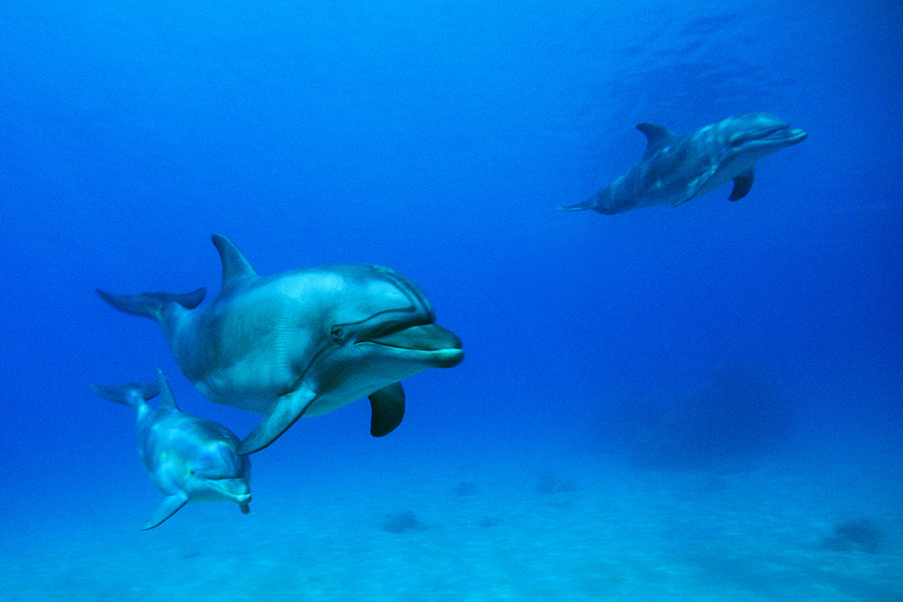Nel mondo subacqueo, il numero tre ritorna in molteplici forme. Molti organismi marini si organizzano secondo moduli ternari. I delfini si muovono spesso in piccoli gruppi familiari composti da tre membri: madre, cucciolo e “zia” (una femmina che aiuta nella protezione).