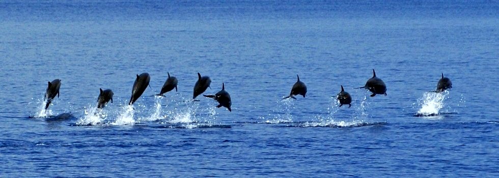 Generalmente si incontrano quando il branco si sposta ed i giovani si avvicinano incuriositi a snorkelisti, subacquei o imbarcazioni. Quasi sempre però l’incontro è fugace il quanto il delfino, animale estremamente intelligente, preferisce evitare il contatto prolungato con l’uomo (ed ha ragione). Solo una volta ho avuto il grande piace di nuotare a lungo con un gruppetto di delfini. Era un periodo molto felice e particolare della vita in quanto ero in attesa di mia figlia. Nei nove mesi di gravidanza ho potuto fare solo snorkeling e passavo ore e ore in acqua con maschera e pinne. Un tardo pomeriggio, mentre nuotavo dall’isola alla barca, sento il fischio tipico dei delfini. All’inizio non riesco a vederli ma poi da lontano vedo delle schiene lucenti che si muovono e soffiano lentamente. Nuoto verso di loro, sperando che si facciano raggiungere. Speranza vana, perché quando arrivo nel punto dei delfini neanche l’ombra… ma poco dopo ne vedo due sfrecciare veloci sono di me. Sto ferma e guardo bene nel blu, magari ricompaiono. Ma niente, così un po’ delusa riprendo a nuotare verso la barca ed è proprio allora che due delfini mi si affiancano e mi guardano per pochi istanti. L’emozione è talmente grande che non sono ben sicura se ho sognato o no… ma subito dopo mi rendo conto che il branco sta uscendo verso l’Oceano ed io sono proprio in mezzo a loro. La maggior parte procede senza curarsi di me a 10-15 metri di profondità, qualcuno invece mi guarda e fa le piroette (mi piace illudermi che volessero salutarmi). Sono tantissimi, anche se non so dire quanti: ci sono adulti, giovani e madri con i cuccioli che stanno attaccati a loro muovendosi all’unisono. Poi all’improvviso, come erano comparsi, scompaiono alla vista, e lasciano solo il blu del mare sotto di me. Il tutto dura pochi minuti, ma io ho una tale eccitazione addosso che decido di rimanere in quel punto ancora un po’, non si sa mai…