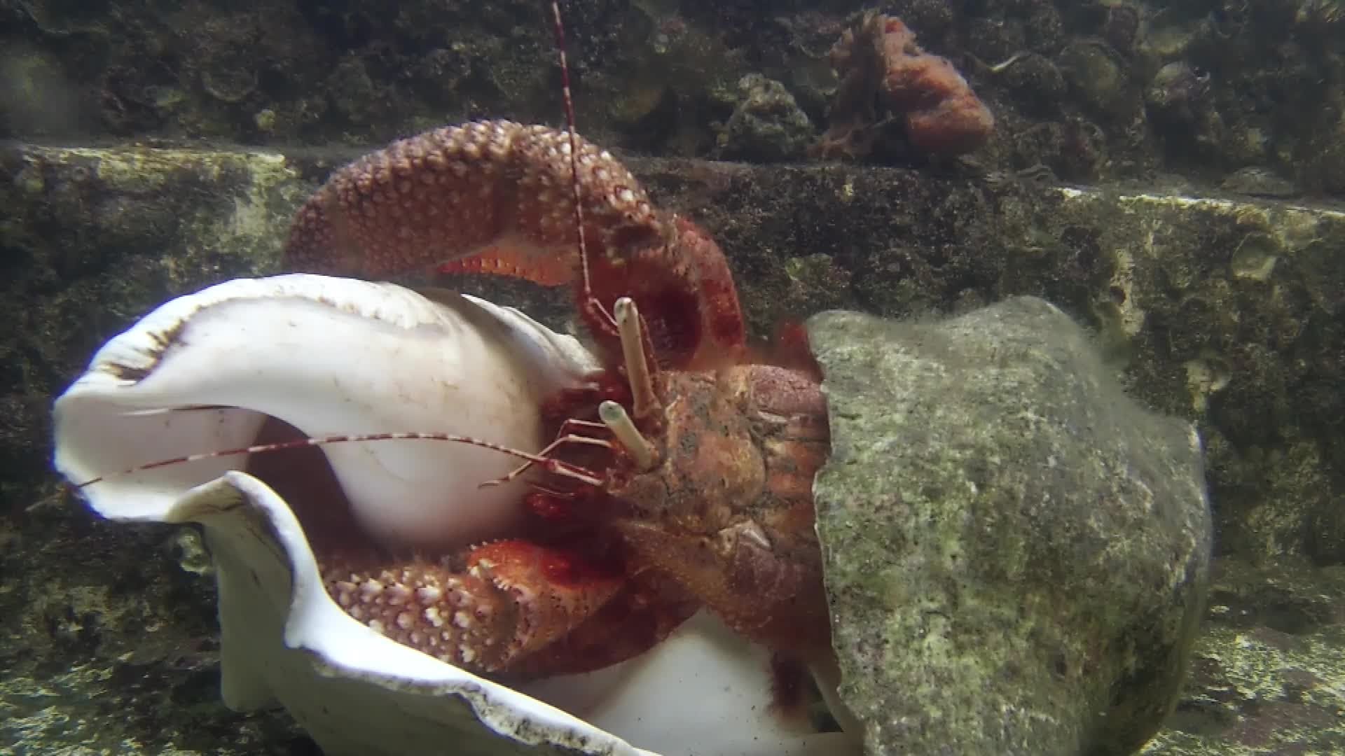 Ad un certo punto, dopo essersi trascinati per le chele, pizzicati e presi a pugni, il classico ‘terzo’ tra i due litiganti, se la gode, e con estrema nonchalance, mentre intorno a lui c’ è una rissa da bar stile western, si tuffa nella conchiglia tanto desiderata, fonte delle dispute.