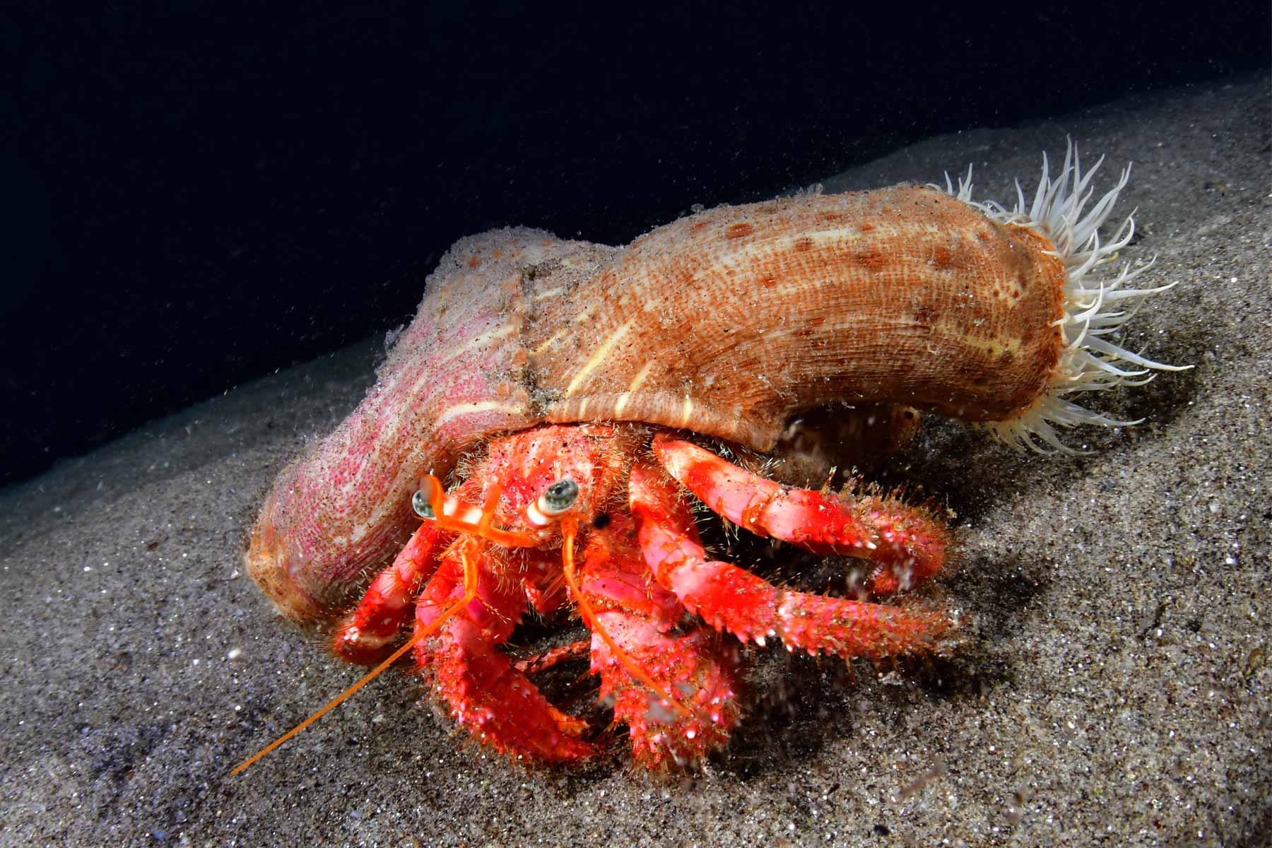 Il paguro con le attinie sul groppone è un animale prevalentemente notturno. Di giorno ama starsene nascosto in zone buie o in penombra. Durante un’immersione notturna, capita spesso di trovarlo con la sua conchiglia e la nutrita collezione di attinie da portare a spasso.