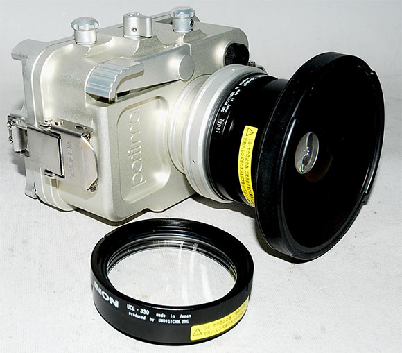 all’oblò ha un filetto M67 per collegare sia grandangolari che lenti macro