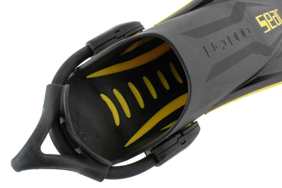 Seac U-1000 sono le nuove pinne da scuba di Seacsub pensate per i subacquei più esigenti, che chiedono ottime performance e grande spinta. Le pinne Seac U-1000 sono ultra resistenti, adatte all’uso intensivo e professionale, anche nel settore militare. Lo studio di uno speciale polimero termoplastico ha permesso di creare una struttura forte, che dura nel tempo e resiste a urti, abrasioni e sbalzi di temperatura. La superficie in gomma all’interno della pala subisce una flessione tale da spostare un maggiore volume d’acqua (effetto “cucchiaio”) e quindi ottenere più spinta. La scarpetta delle pinne Seac U-1000 ha una suola antisdrucciolo ed è rapida da calzare grazie al cinghiolo elastico Sling Strap. Le Seac U-1000 sono pinne da subacquea negative e annullano quindi la possibile spinta positiva che in alcuni casi producono i calzari da subacquea. La ricerca del massimo delle performance si unisce poi a un design sofisticato, con una pala dalla linea e dalle grafiche accattivanti.
