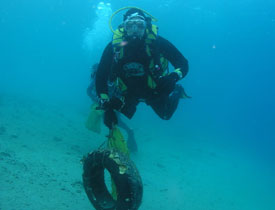 Gli sforzi congiunti dei sub hanno dato buoni risultati: al termine dell’immersione sulla spiaggetta antistante il diving si era accumulata una quantità considerevole di rifiuti, dalle bottiglie ai copertoni, dalle reti a scarpe vecchie, tapparelle, galleggianti da pesca, lattine, lenze, scatole e tanto altro.