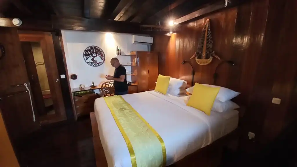 Dewi Nusantara non è solo una barca, ma un’opera d’arte galleggiante. Questa goletta a tre alberi lunga 57 metri, tutta in legno, combina eleganza senza tempo e comfort moderno. Le cabine spaziose sono dotate di letti comodi, bagno privato e tipici oblò panoramici. A bordo potrete godere di cucina gourmet con piatti locali e internazionali, servizi dedicati ai subacquei, spazi attrezzati per immersioni, vasche separate per attrezzatura subacquea e fotografica, una camera room attrezzata, guide esperte (rapporto massimo di quattro subacquei per guida) e, se necessario, essere sempre connessi grazie al servizio opzionale Starlink.