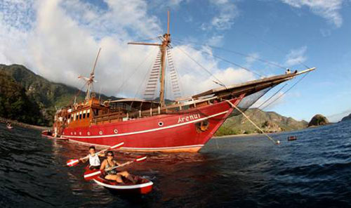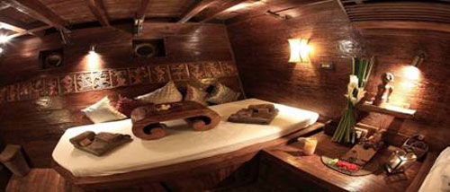 Il design dell’intera imbarcazione riflette la varietà del patrimonio artistico indonesiano. Ogni cabina rappresenta un piccolo capolavoro impreziosito da elementi d’arredo provenienti dalle province più remote dell’arcipelago indonesiano.