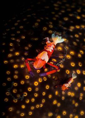 Alcune delle altre bizzarre creature che regolarmente si incontrano in queste acquee sono il polipo imitatore, la Rhinopia, granchi zebra e decine di varietà di nudibranchi.