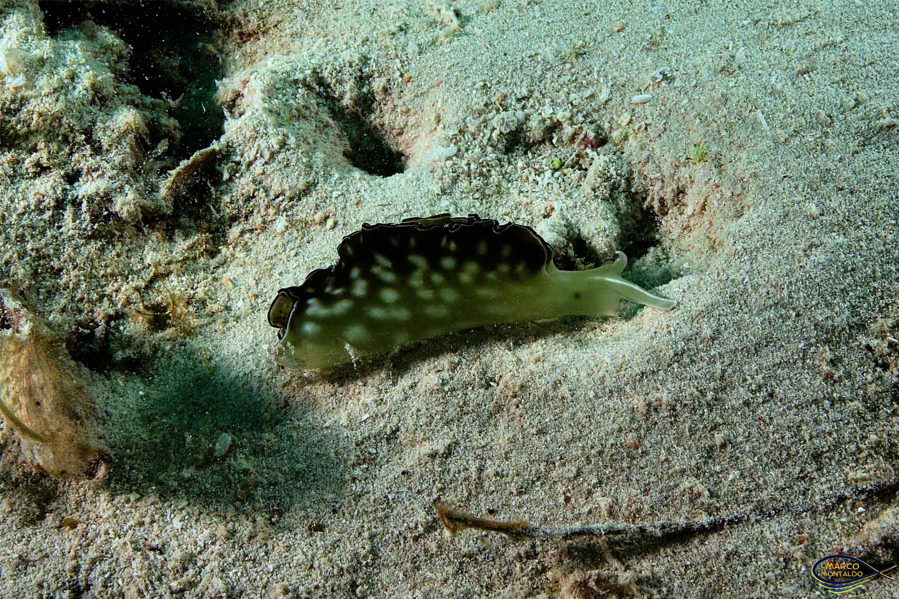 Proseguendo sulla sabbia al confine con il reef troviamo una Elysia Ornata (foto 4), un mollusco opistobranchio del gruppo delle Sacoglosse, spesso confuso con i nudibranchi.