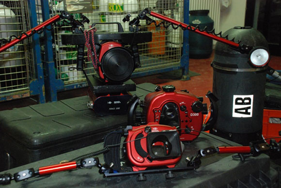 videocamera Panasonic, due Nikon D300 e una Canon G11, dotate tutte di custodie