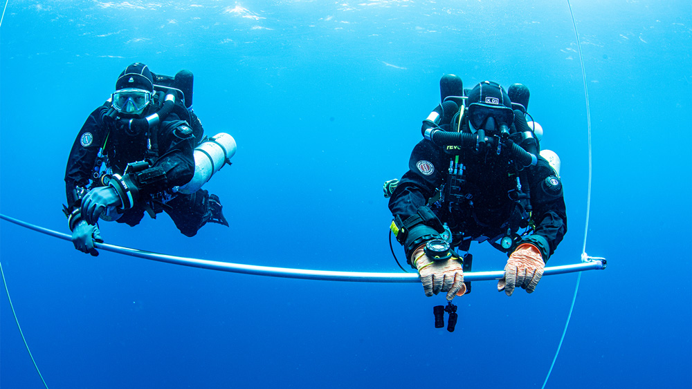 Per assolvere al meglio ai nostri obblighi di decompressione, utilizzeremo una stazione di decompressione. L’ultimo subacqueo disconnette la stazione di decompressione dalla linea di discesa in modo da poter adempiere tutti insieme ai nostri obblighi, e Jason dovrà prestare attenzione solo alle due boe rosse anziché a diverse SMB (Surface Marker Buoy) in luoghi diversi.