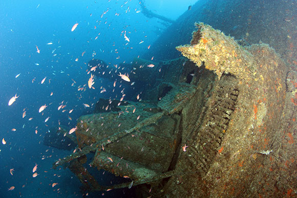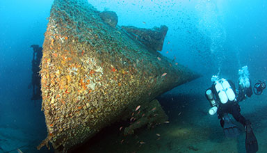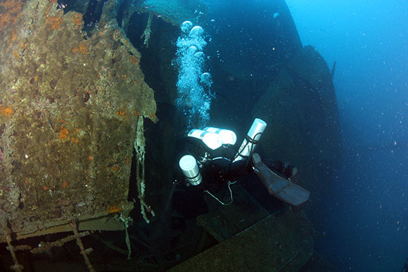 diving più vicino al relitto, posato su di un fondale di 57 metri davanti alla