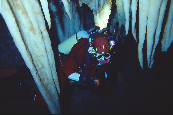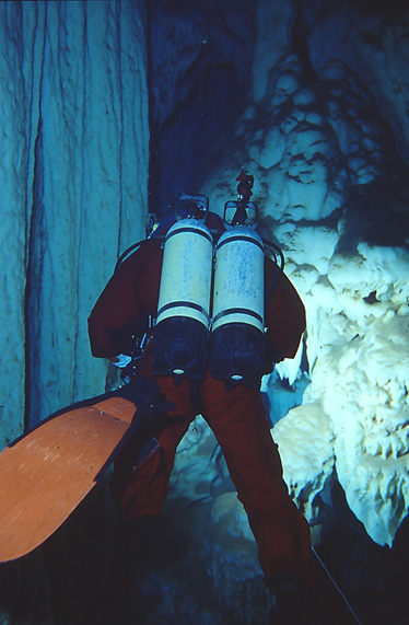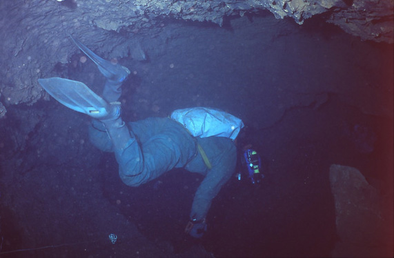 La speleologia subacquea è un’attività che contempla l’esplorazione di cavità naturali allagate. Ritengo necessaria una breve descrizione di queste per far comprendere l’ambiente in cui lo speleosub si trova. Queste cavità infatti possono essere di differenti dimensioni : larghe o molto strette, con acqua limpida o, come spesso accade, con visibilità ridotta a pochi centimetri. In comune hanno sempre la più completa oscurità che viene interrotta solo dalle torce e dai faretti che lo speleosub porta fissati sul casco. E’ un’attività che se praticata senza le dovute conoscenze tecnico pratiche e dei propri limiti si può rivelare pericolosa per molteplici ragioni : si procede sott’acqua e già questa non è una situazione di normalità ; ci si trova in una grotta ( ambiente che ad alcuni da sintomi di claustrofobia ) costretti a seguire perciò un percorso obbligato nel quale si nascondono insidie di molti tipi.