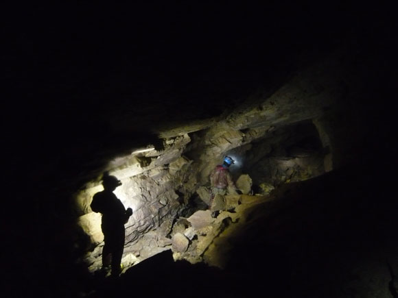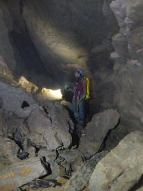La condotta è piuttosto larga, si restringe solo in un paio di punti a causa di massi di crollo.