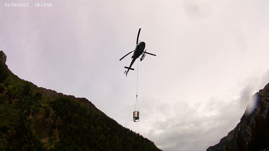 FASE 3: Trasferimento in quota con elicottero di tutta la spedizione e report sulla immissione nel lago