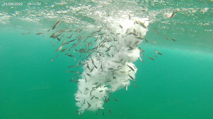 Attenta preparazione dei pesci (leggasi la scheda allegata) per arrivare il più possibile puntuali con la fase di crescita idonea al rilascio, in sinergia con l’organizzazione meticolosa tipo box da formula 1 durante un pit stop con il locale eliporto incastrando il tutto con le condizioni metereologiche che in questo periodo assomigliavano molto ai climi equatoriali all’arrivo dei monsoni.