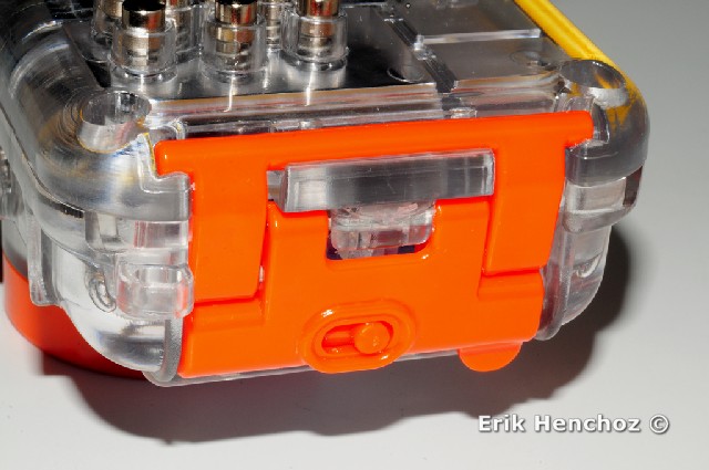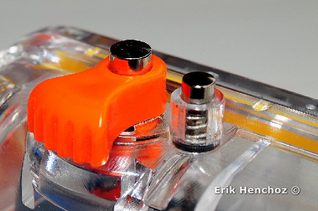 Particolare dei comandi posizionati nella parte superiore della custodia. Da