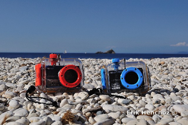 In spiaggia con le custodie Nimar e le colorate fotocamere Nikon Coolpix S570 e