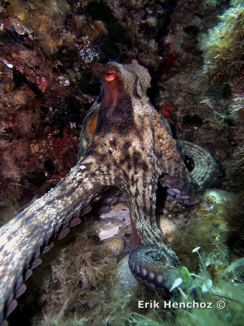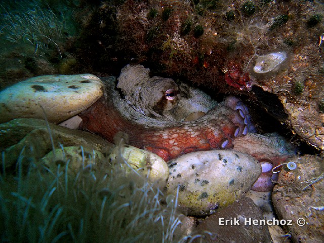 Un Polpo (Octopus vulgaris) fotografato con Coolpix S570 utilizzando il flash