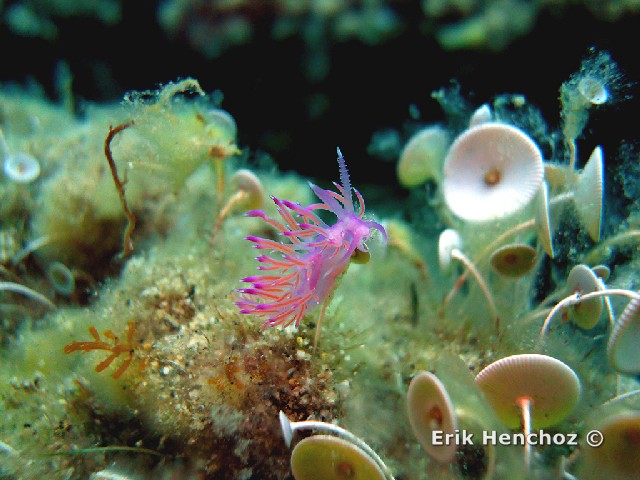 Un piccolo nudibranco (Flabellina affinis) fotografato utilizzando il
