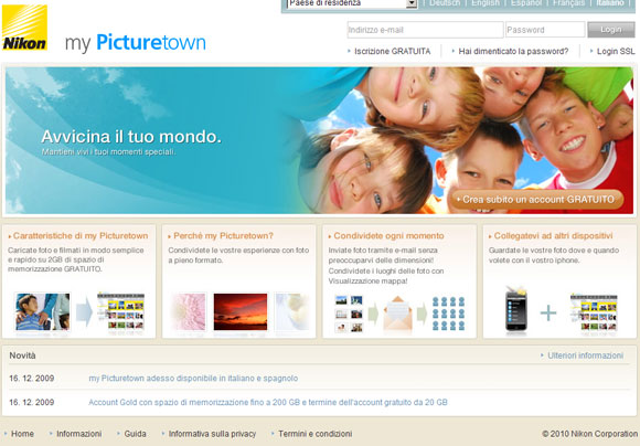 utilizzando “My Picturetown”, il sito web appositamente studiato da Nikon dove