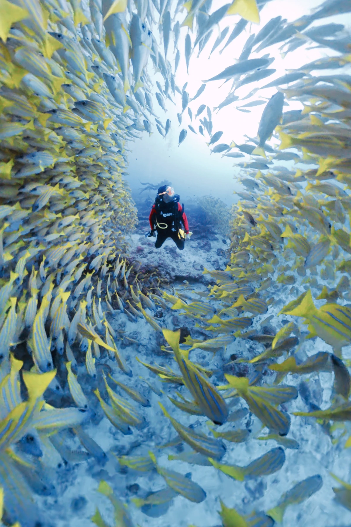 Per quanto riguarda il ritmo, prima di partire pensavo che immergersi tre volte al giorno fosse eccessivo, persino per chi ama davvero la subacquea. Due settimane dopo il viaggio ho ancora i piedi pieni di piccole ferite, perché non volevo mai uscire dall’acqua. Il mare delle Maldive era sempre lì, a chiamarti.