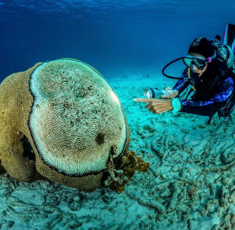 Subacquei scientifici impegnati nella creazione di una banca del DNA corallino per coralli Stella e Cervello.