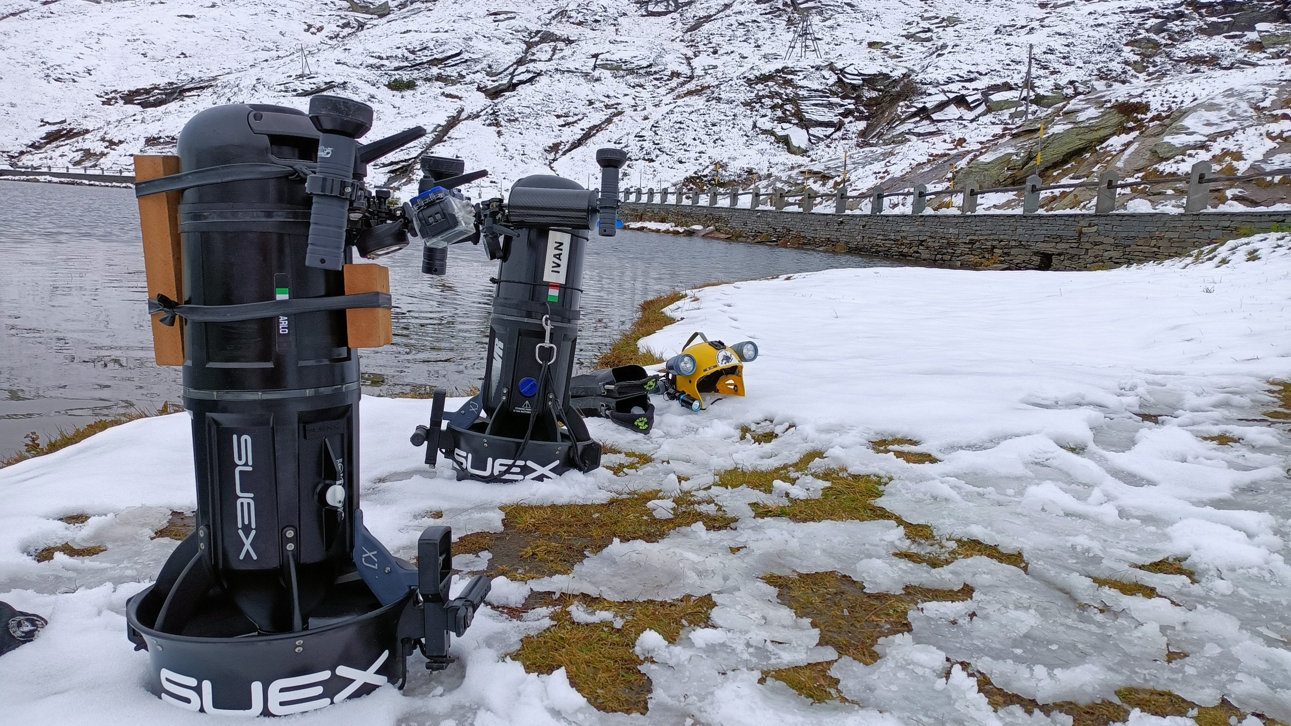 L’aiuto di Marco Boldini provvidenziale per salire al Passo, ci ha consentito di sfoderare in tutta tranquillità, abbigliamento tecnico, termico, scooter, bibo, mono , erogatori antifreeze, retino (non quello per le farfalle!!) e quant’altro, per la ricognizione nelle acque a 5° e nel contempo, anche condurre “ L’operazione lago pulito “ con raccolta di spazzatura di vario genere , sui fondali erbosi dello specchio d’acqua .