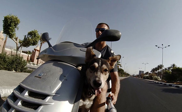 In moto? Un cane??