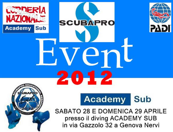 Academy Sub è lieta di organizzare sabato 28 e domenica 29 aprile in collaborazione con Scubapro Uwatec due giornate interamente dedicate alla subacquea, nelle quali sarà possibile provare in acqua tutte le attrezzature messe a disposizione da Scubapro per voi subacquei: oltre 80 attrezzature tra cui mute stagne*, mute, gav, erogatori, pinne, maschere e computer subacquei. Sarà inoltre possibile provare in immersione l’attrezzatura foto-sub della SeaLife.