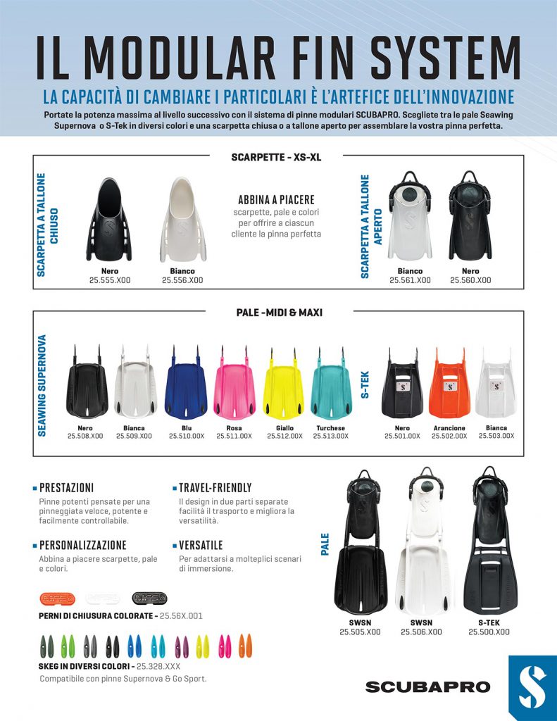 Il sistema modulare per pinne (MFS) di SCUBAPRO va oltre la personalizzazione. Il sistema modulare per pinne SCUBAPRO offre una gamma di componenti intercambiabili che consentono di ottimizzare le pinne in base alle diverse condizioni di immersione e di personalizzarle con colori diversi.