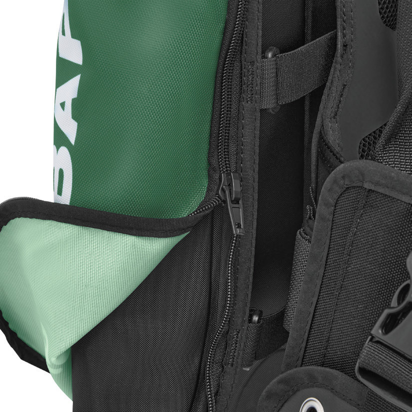 Il Navigator Lite garantisce un’eccellente stabilità sott’acqua, grazie alle fibbie Quick Cinch, collegate a una fascia di ritenzione hook & loop da 50 mm, che assicurano una tenuta ottimale della bombola. Il fascione ventrale imbottito offre comfort e regolabilità, con tasche removibili capaci di alloggiare fino a 2,5 kg di zavorra ciascuna.