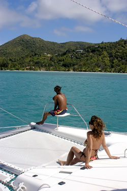 Arriviamo in poco tempo alla banchina dove troviamo la King Bamboo, un piccolo catamarano molto ben curato che il nostro ospite e capitano Charles ama più di un figlio. Charles ed il suo secondo Allain, ci aiutano a portare le valigie a bordo ed a sistemarci nelle nostre cabine. Messo un costume da bagno e abbandonate le scarpe, un briefing ci illustra la barca e la nostra crociera. <<Si parte subito>> annuncia Charles nel suo inglese perfetto, ma parla anche francese e comincia ad imparare l’italiano dai turisti, <<in 30 minuti saremo nel punto di immersione, se intanto volete fare uno spuntino o bere qualcosa, il frigorifero è a vostra disposizione>>, aggiunge Charles, la sua gentilezza ed ospitalità ci incanta sin dal primo momento.