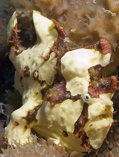 Il secondo punto d’immersione è Barracuda Rock. Un labirintico pinnacolo di granito tagliato da grotte, canyons e passaggi. In una grottina incontriamo il nostro primo squalo nutrice, riusciamo a vedere solo la coda, la testa è ben protetta all’interno della grotta. In una grotta più grande ne troviamo due di dimensioni veramente eccezionali, questi sono ben posizionati per le nostre foto, ma i flash sembrano infastidirli e dopo un po’ decidiamo che è il caso di lasciarli al loro riposo. Tonni pinna gialla e dente di cane (mai nome fu più indicato) terrorizzano gli abitanti del reef. Sulla sabbia alcune razze dalla coda piumata si allontanano velocemente infastidite dalla nostra presenza, mentre i pinna bianca girano indisturbati. Charles ci chiama per mostrarci uno strano scorpenide, è alquanto affascinante e inusuale, seppur non si possa definire bello, con tutte le sue appendici a forma di alga.